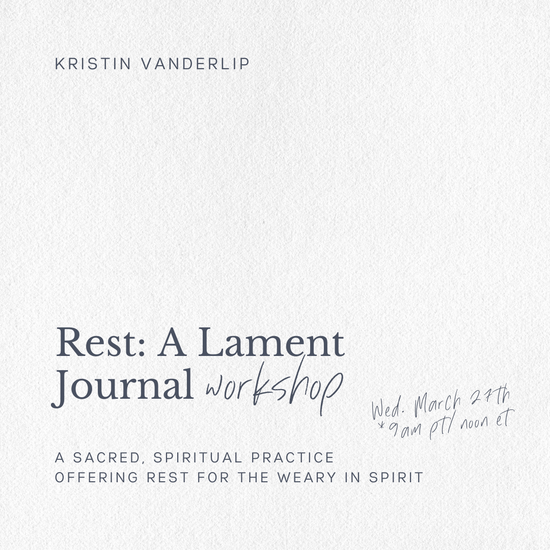 Join me next week as I host a live virtual lament journaling workshop on Wednesday, March 27th, at 9 a.m. PT/noon ET.